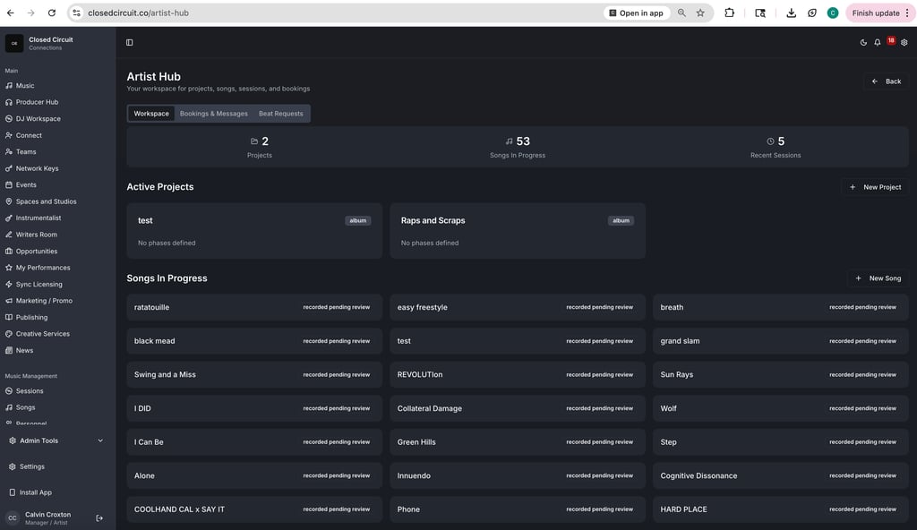 A lot can happen between the time you record a verse and the time that record is released. Files move. Collaborators change. Versions get lost. Credits shift. Metadata becomes fragmented. And sometimes ownership is questioned. When you upload a song into Closed Circuit for the first time, a cryptographic hash is generated. That hash acts as a timestamped fingerprint of the file. If needed, that hash can serve as legally admissible proof of work demonstrating that a specific version of that creation existed at a specific time. That’s Pow.