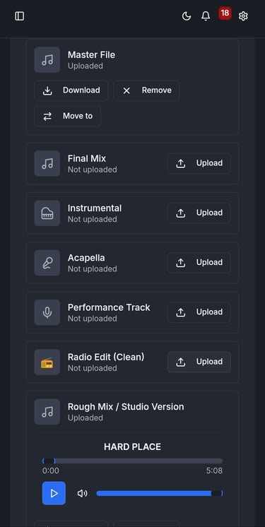 And instead of juggling file transfer services or filling your phone with WAV exports, every version lives inside a structured history attached to the same song entry.